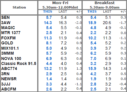 There’s some really interesting movements in melbourne radio. It’s going to be a knockout back end of the season. It’s all up for grabs and only the strongest will survive. Good luck ol chaps