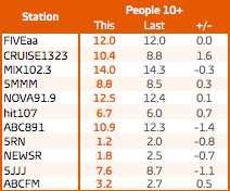 In a static period in the Adelaide radio scene, Australian Radio Network’s Mix102.3 held onto the FM top spot with a Monday to Sunday share of 14 per cent, ahead of rival Nova91.9 which posted a share of 12.5 per cent.