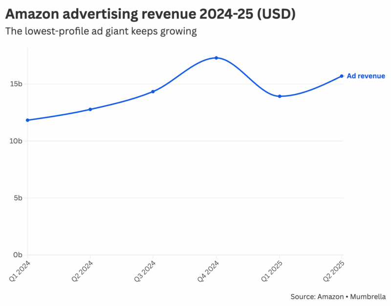 Amazon increased its advertising-services revenue by 23% year-on-year in the past quarter, to about A$24 billion, continuing momentum that has seen its relatively low-profile ad business eclipse traditional media.