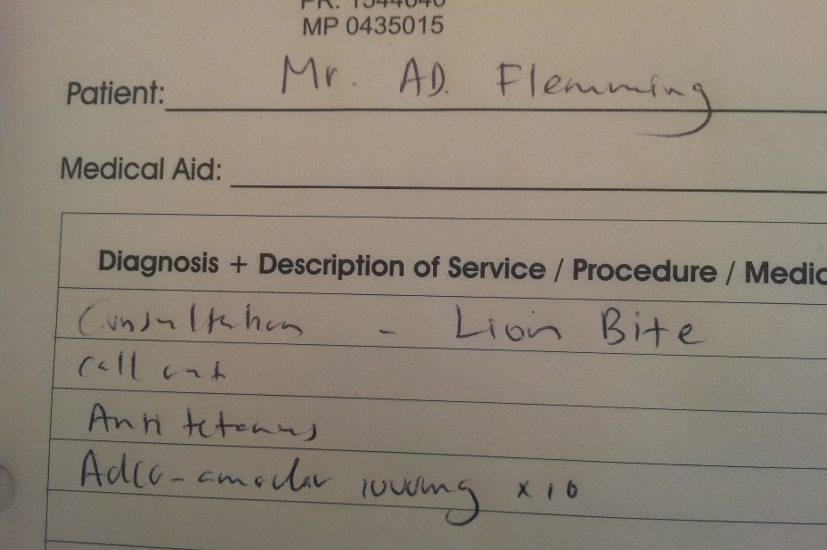The poor chap was bitten by a lion during the shoot in South Africa.
