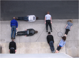 So Dr Mumbo salutes media agency Frank Vizeum’s strategy team for squeezing in a few seconds in their busy day to lie face down on the pavement to spell out the agency’s initials.