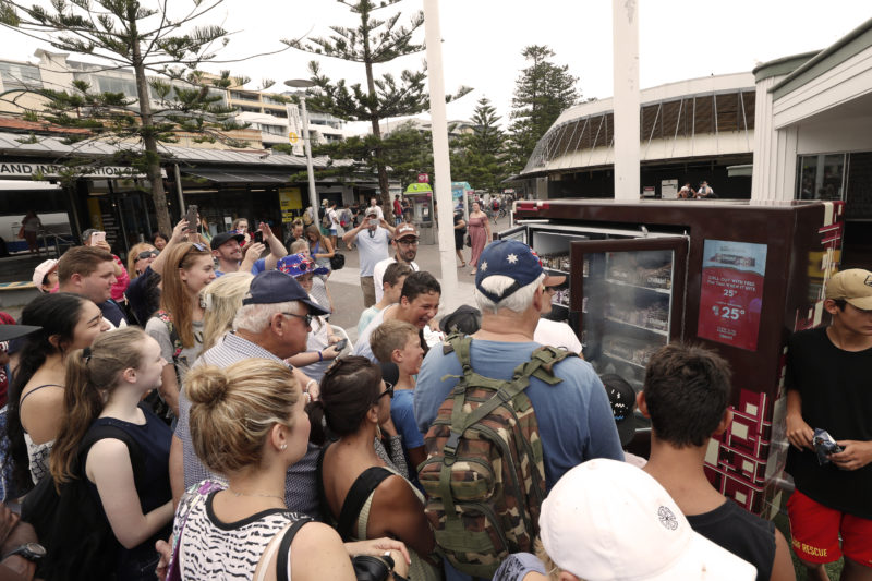 Using live data from the Bureau of Meteorology, the refrigerated units were programmed to open at a set temperature on the day to give away packets to passers by.