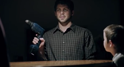 The ad uses a game of Russian roulette with a power drill played by a family to get the point across for the Asbestos Diseases Research Institute and asbestosawareness.com.au.