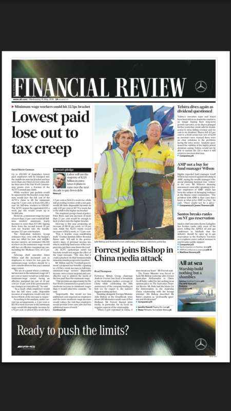 The campaign sees the Financial Review’s logo altered with a black back drop and the car brand’s symbol.