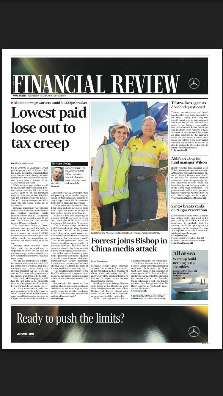 Fairfax Media’s Australian Financial Review has moved away from its blue-coloured logo to a black back-drop today, as part of an advertising stunt with Mercedes-Benz.