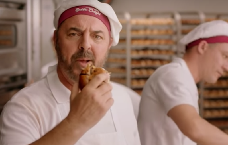 A voiceover then ruins his moment by disclosing various ingredients in the buns and some of the brand’s baking processes.