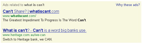 Type in the words ‘Can’t’ and ‘What is can’t’ on Google, and the Queensland-based bank ranks second in the list of sponsored searches, just behind the teaser campaign domain whatiscan’t.com.