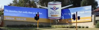 Bankwest has built a new poster site in Perth in which a giant winged donation tin is wedged between two billboards to encourage motorists to donate to the Royal Flying Doctor Service.