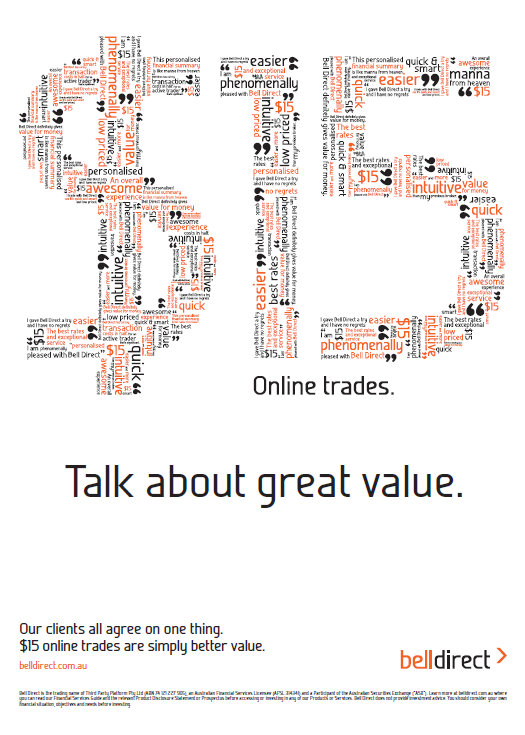 An image-free ad made entirely from client testimonials is the creative idea behind the latest campaign for Bell Direct, the online stockbroking firm. Created by BMA with media by MPG and Media Contacts, the ad targets frequent traders and active investors.