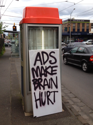A brand’s empty ad space, is a culture jammer’s opportunity to vent spleen. Spotted today on Nicholson Street in East Brunswick, Melbourne.