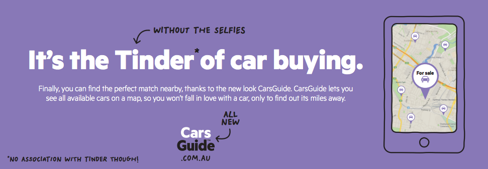 And the best they can come up with is the Tinder for car buying!! Wow where has the creativity in agency land gone…..what next The Uber of Auto