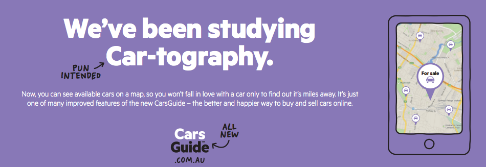 I’d suggest the drop the insanely old fashioned way to drive a brand with the very name “CarsGuide” being uppercase “G” before trying to position themselves as something new and interesting. It just looks old and odd.