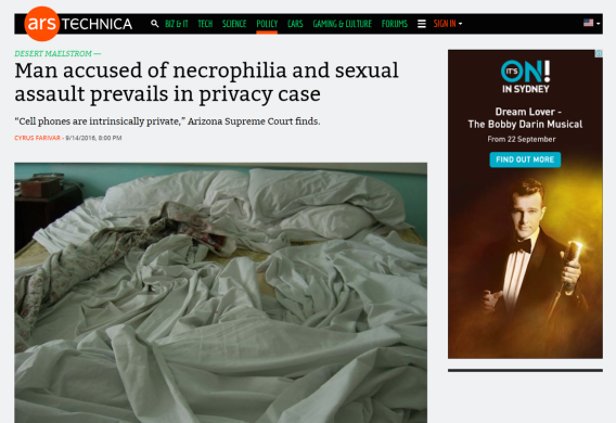Another day, another cringeworthy ad placement. Today's sees the juxtaposition of a story about a man accused of some less-than-legal bedroom activities - including necrophilia (if you don't know what that is don't Google it at work) juxtaposed with an ad for the musical Dream Lover, st...