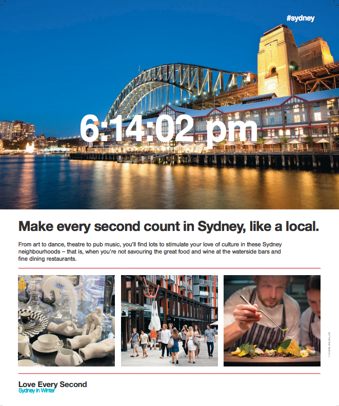 Destination NSW has launched a campaign to increase tourism numbers to the City of Sydney with the catchy line, ‘Make the Most of Every Second in Sydney Just Like a Local’.