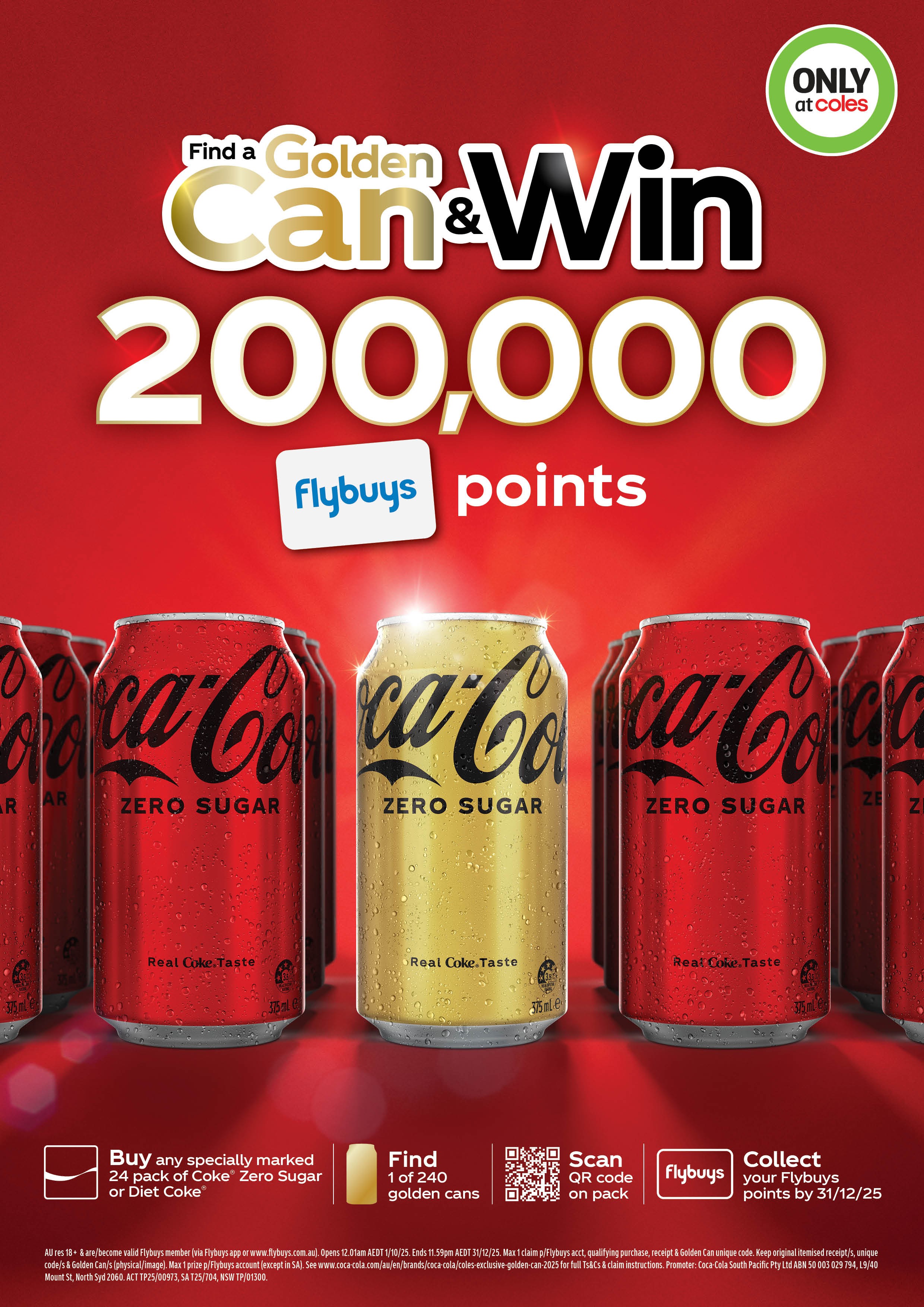 Coca-Cola is working with Coles on an activation “that gives consumers the chance to find a ‘Golden Can’ to unlock hundreds of thousands of Flybuys rewards”.