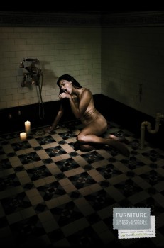 In one execution of a series created by GPY&R Melbourne, a naked woman licks herself clean in her bathroom. In another, a couple eat their dinner off the floor. The strapline reads: ‘furniture: it’s what separates us from animals.’