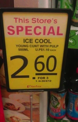 It appears that even retailers in meticulous Singapore are not immune to the occasional spelling blunder… and unfortunate ways of shortening the word coconut.