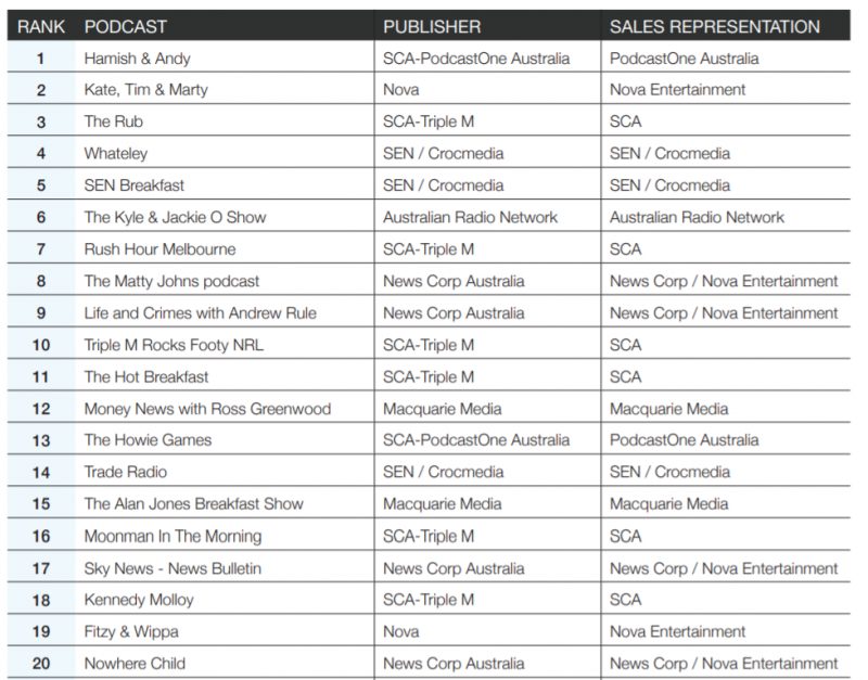 Worth noting the significant absence of Australian podcasts not created by a commercial radio network.