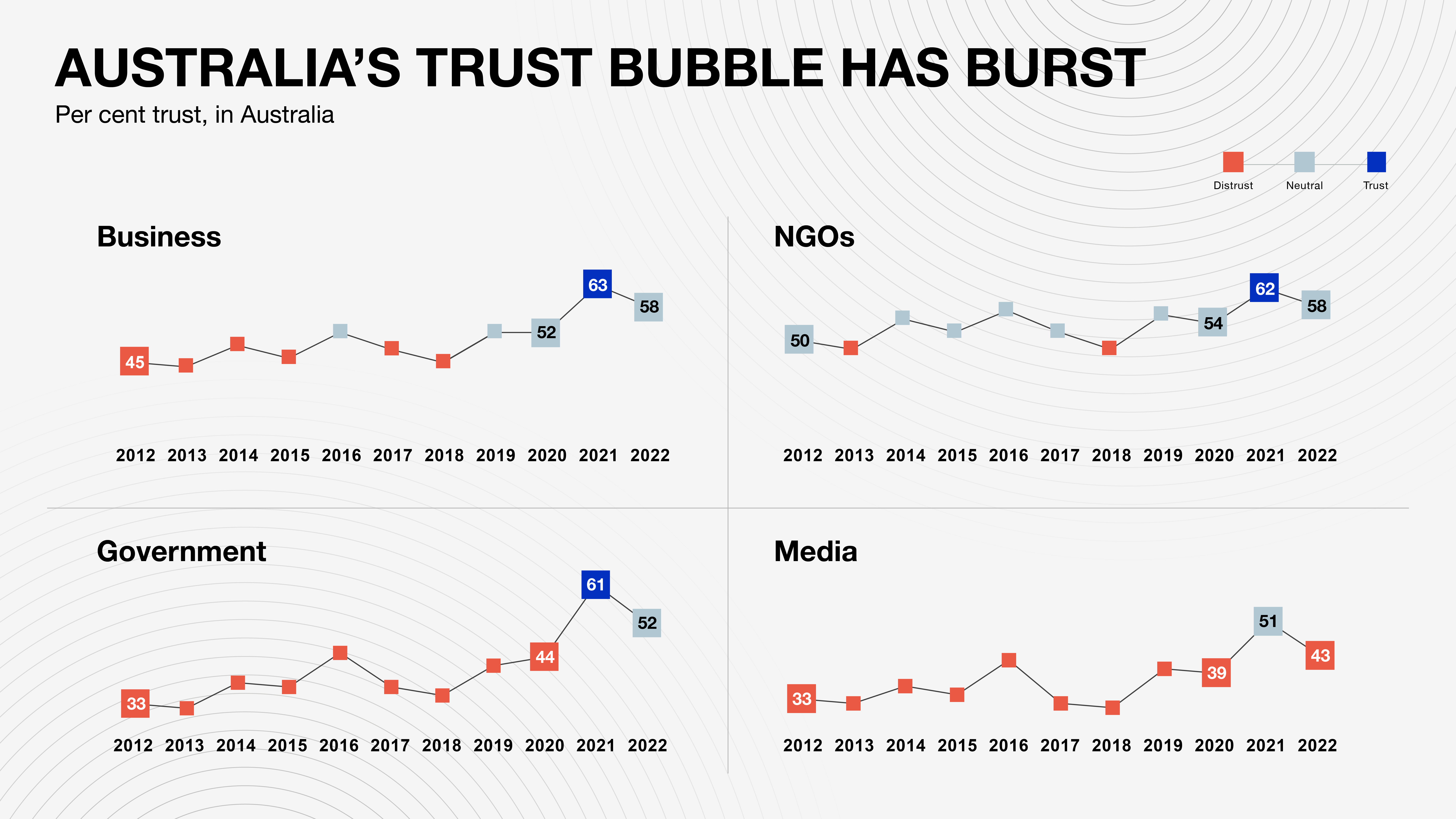 It is a continuation of a trend from the 2021 Trust Barometer, which revealed that no media source was trusted for news and information by Australians.