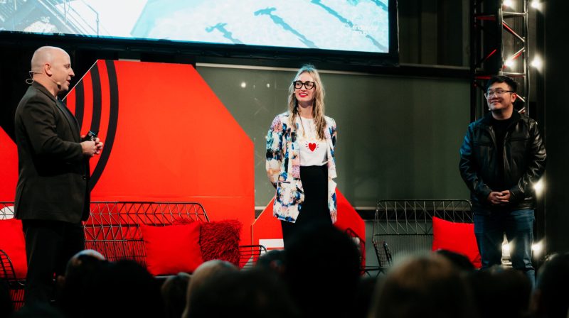 (L-R): Chris Howatson, Katie Dally, and Hoàng Nguyen presenting at Mumbrella360 earlier this year (Mumbrella)