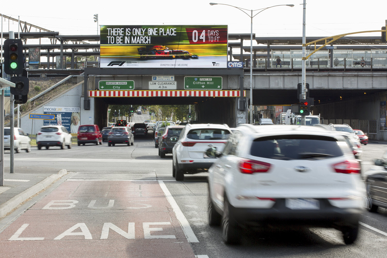 A countdown to the Formula 1 2018 Australian Grand Prix in Melbourne is part of a dynamic out-of-home campaign, which will also showcase the race’s results minutes after its completion.