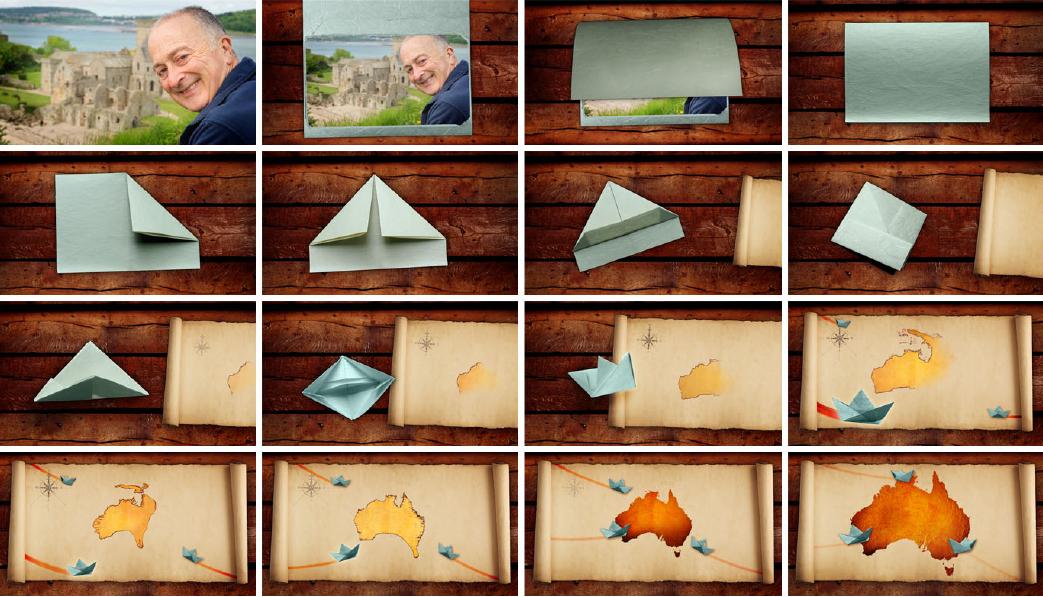 We were commissioned by WTFN, to produce the broadcast brand, full graphics packages for the new series Tony Robinson Explores Australia which premiered on May 3 on the History Channel in Australia. It will also be distributed to the UK. The creative process used a stop animation technique and we executed a comprehensive shoot to deliver opening titles using a modern stop motion animation style of unfolding origami as a style reflecting the host’s story-telling personality supported with detailed animated in-show travel maps. We think the result is bold and entertaining, complimenting the host and appealing to the target audience.