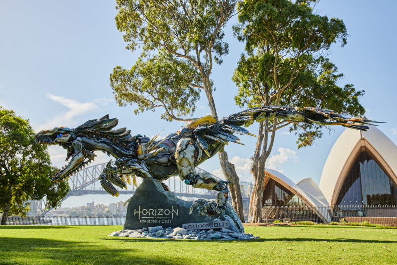 PlayStation Australia has celebrated the launch of its new exclusive title Horizon Forbidden West with the installation of a Clawstrider statue at Bennelong Lawn in Sydney’s Royal Botanic Garden from the 18th to the 22nd of February.