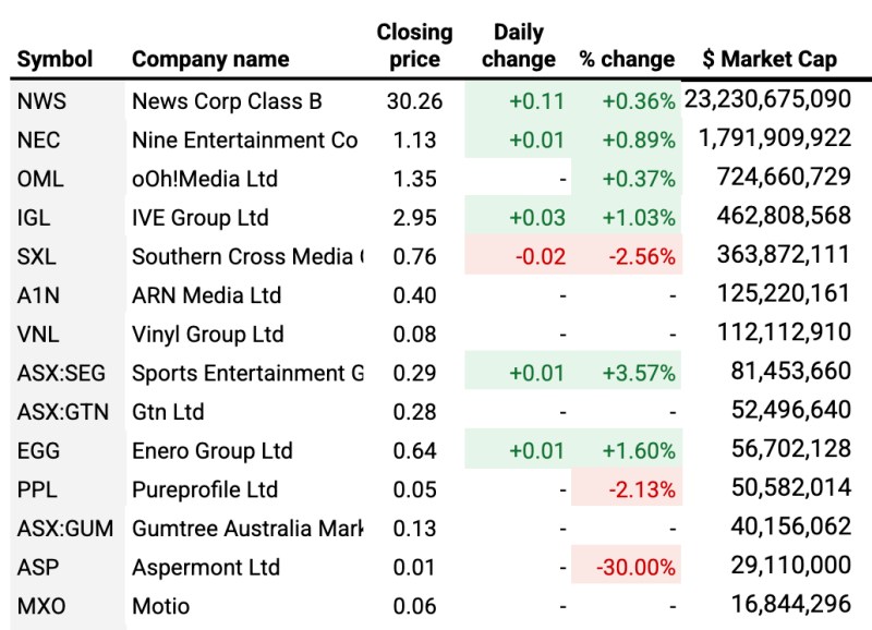 The radio and TV broadcaster sits fifth on the table, worth just under $364m according to the market.