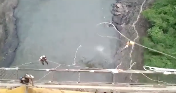 The video tells the story of Australian Erin Langworthy, who fell 360 feet into a river in Zambia in 2011 after her bungee cord broke.