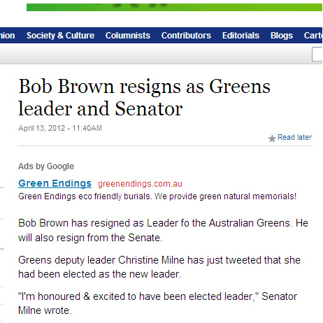 Bob Brown is not dead. But the man who has just quit the Green Party will probably like the sound of an eco friendly burial when he passes on.