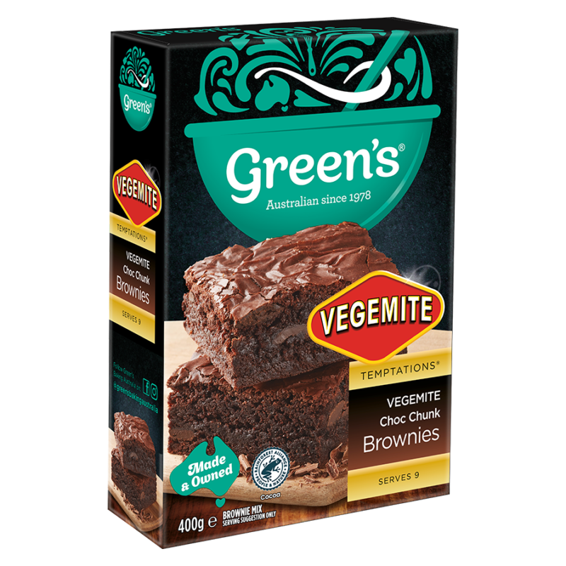 Green’s has partnered with Vegemite to create the Vegemite choc chunk brownie, available in Coles from today.