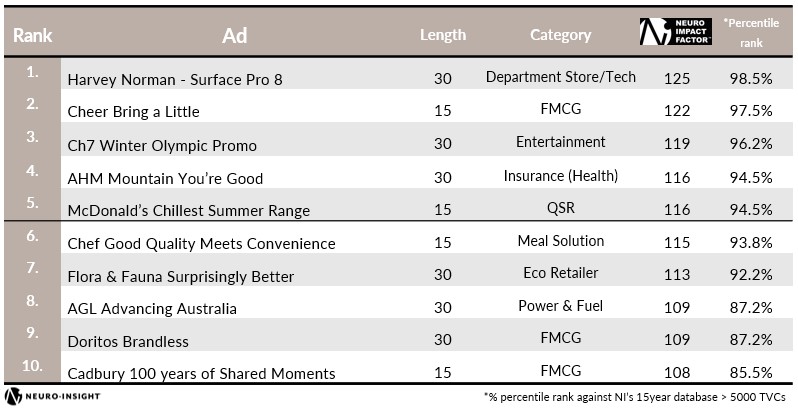 Neuro-Insight has revealed the 10 most effective ads in Australia’s broadcast media, according to neuroscience.
