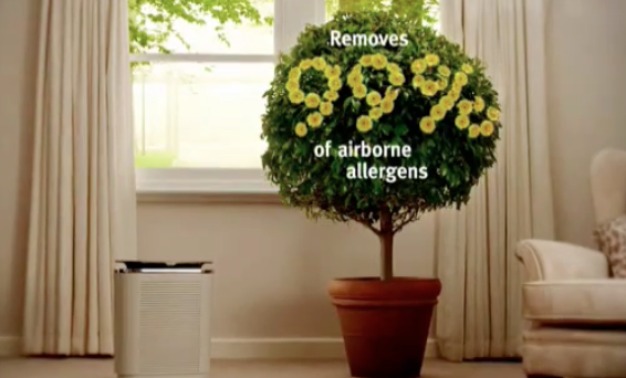 The 15-second TV ad promotes a range of advanced Hepa air cleaners that claim to remove 99% of all airborne allergens.