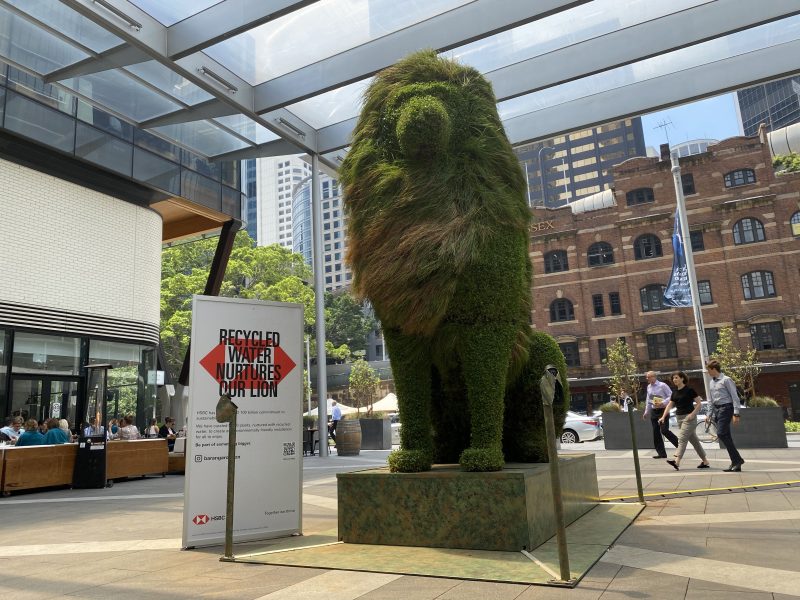 HSBC Australia has installed a four-metre high ‘living lion’ sculpture in Sydney’s Barangaroo precinct to celebrate the launch of its 40th branch and highlight the bank’s commitment to sustainability.