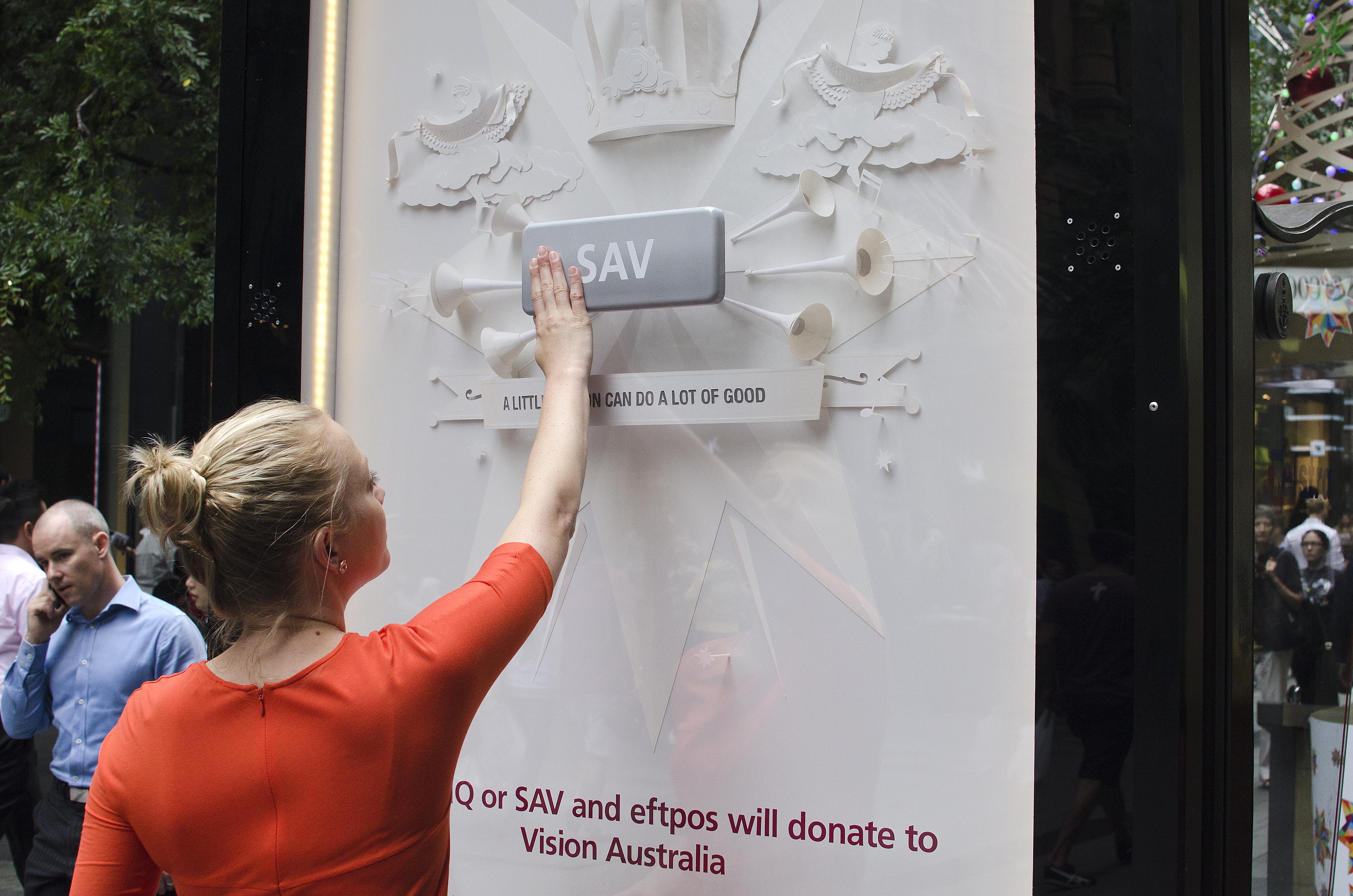 In a similar vein, each time the buttons of a giant billboard are pushed, the billboard starts to sing the Handel track, the idea being that if customers use Eftpos, a donation will be made to Vision Australia.