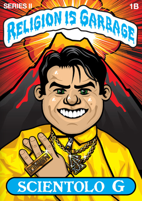 One image shows Hollywood actor and Scientologist Tom Cruise dressed as Ali G, with the slogan ‘Scientolo G’.