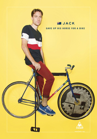 As for the point of the article, it’s great to use local people, and interesting to see Le Coq’s rebrand – they gave away some of the stuff at a recent polo tourney, and it’s really rather nice actually. To be fair the posters have also been spotted in their Melbourne store, but there we go! Just hope the council don’t take offence to someone being spotted on a bike whilst not wearing a helmet – ooooh, risque!