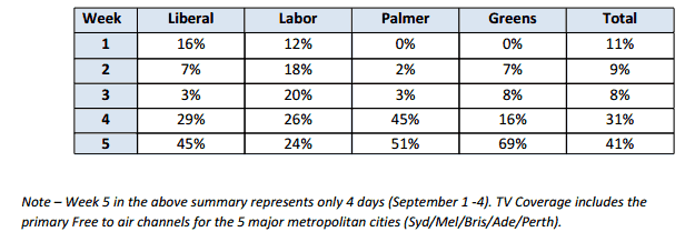 According to the numbers, 74 per cent of theLiberal Party ad spend came in the final fortnight of the five week campaign. This compared to 50 per cent from Labor.