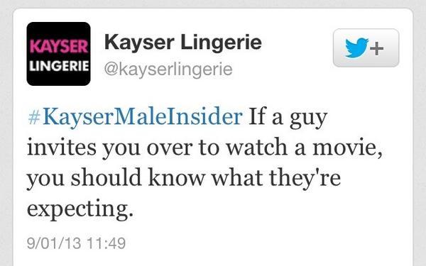 I think it was a great tweet by Kayser to just remind their target market that they should not overlook this “possibility” if they are invited over for a movie and maybe make sure they are wearing a pair of Kayser’s more appropriate product in case that possibility turns into a reality.
