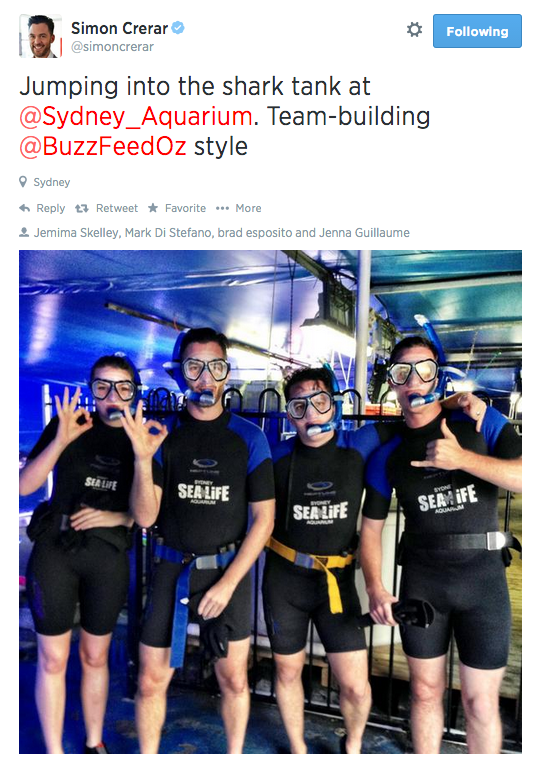 4.21pm – From Twitter: Lots of people in media and marketing do team bonding but the folks from Buzzfeed Australia are taking it to a new level.