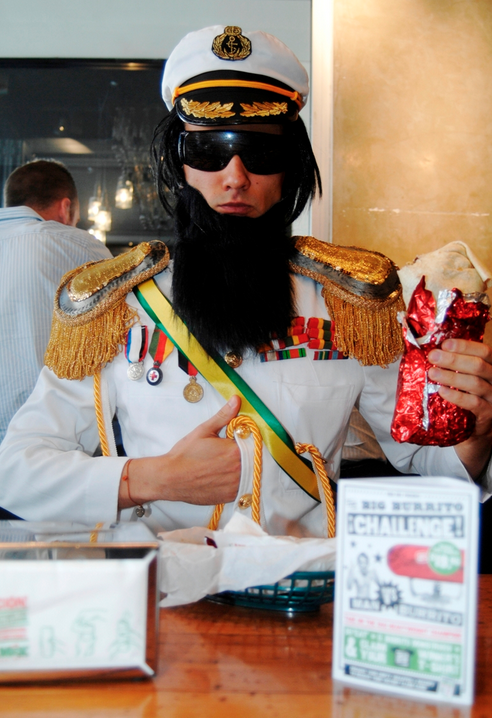 I love the Dictator and I love burritos! What’s not to like? Seems like a bit of harmless fun to me.