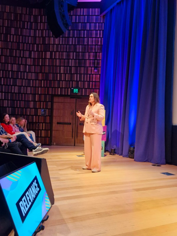 Nat Harvey at the upfront (Mumbrella)