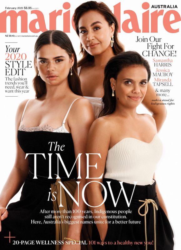 Jess Mauboy, Miranda Tapsell and Samantha Harris have fronted the cover of February’s edition of Marie Claire, as the magazine launches a campaign to push for the constitutional recognition for Aboriginal and Torres Strait Islander people.