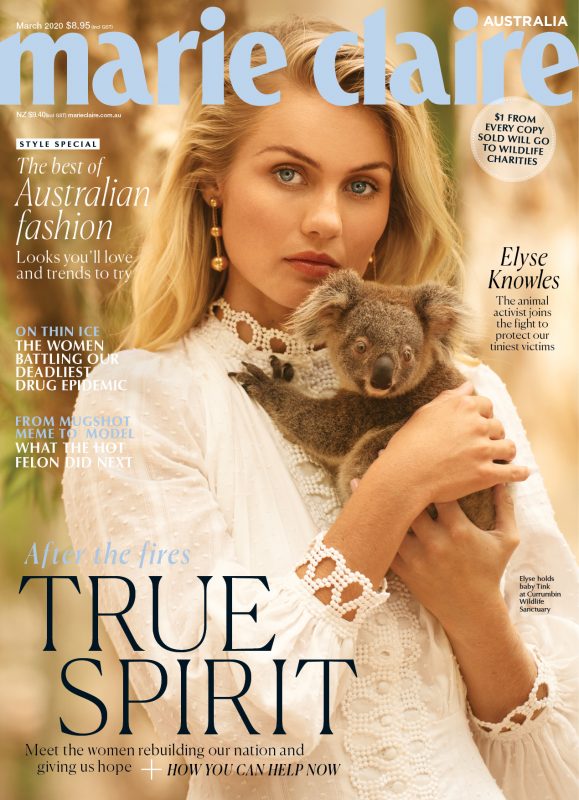 Marie Claire will donate $1 for each copy of its March issue, featuring model Elyse Knowles cradling a koala joey, to wildlife charities dealing with the impact of the bushfire emergency. The funds will be split between Currumbin Wildlife Sanctuary and Hospital, WIRES, Wildlife Victoria, and Kangaroo Island Wildlife Park Fund.