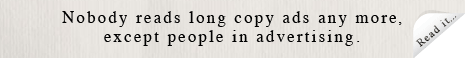 A long-copy ad typical of the nineties, which the reader is led to via a web banner, is headlined: “Nobody reads long copy ads any more, except people in advertising.”