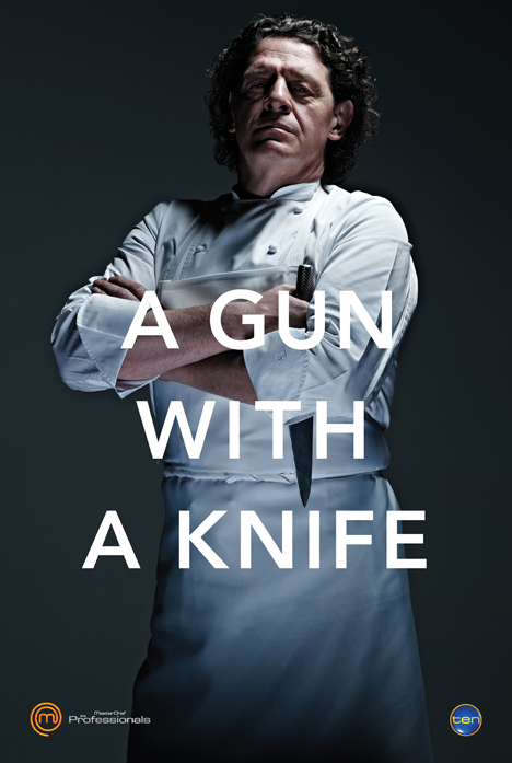 @rebecca – a gun with a knife is inappropriate? Another gun loving loony in the US goes berserk and kills kids but Masterchef can’t use the word ‘gun’ in its copyrighting? are you for real? go back to facebook and twitter please, the more appropriate domains of your brand of anonymous, hysterical self-righteous whining
