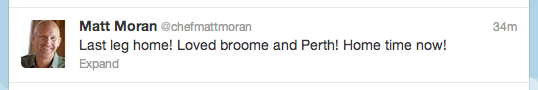 Dr Mumbo can’t help but suspect that, after the Kangaroo Island cash-for-tweets expose a month ago, the people of Perth and Broome are taking Matt Moran’s tweet today with a pinch of salt.