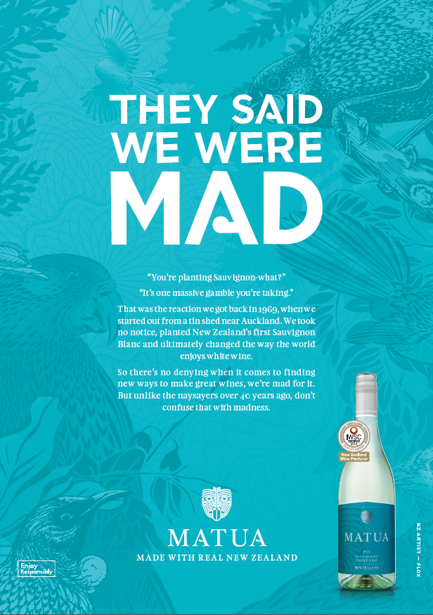 The brand relaunch, developed by Moon Communications Group, comprised the new positioning, a new look and a range of campaign executions. Moon also developed a new typeface for Matua.