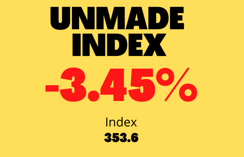 The Unmade Index has now hit new lows for an unprecedented five trading days in a row. Over the last fortnight alone the Unmade Index has lost 13.7% of its value as the investment community appears to have lost belief in the value of media stocks.
