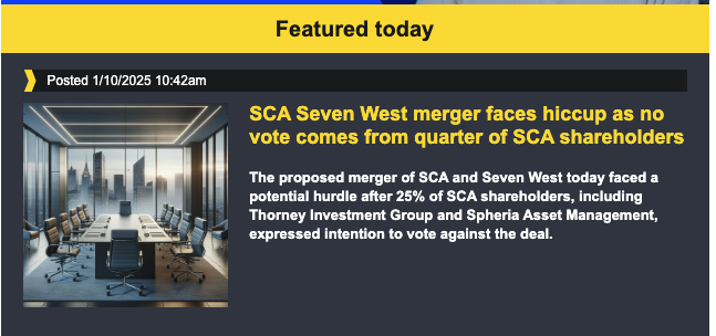 This morning SCA informed the market that activist shareholder Sandon Capital is trying to force a shareholder vote on the matter. Because of the structure of the deal, only SWM shareholders will get a vote, as SCA will issue new stock.